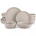 The Playa Collection blends the relaxed charm of Mediterranean style with the contemporary elegance of Modern Ibiza. This 16-piece set features a lipped-edge design and a unique reactive glaze, with interior colors available in blue, light green, dark green, brown, green, grey, caramel, and beige. The set includes dinner plates, dessert plates, soup plates, and cereal bowls for four. The matte black exterior provides a striking contrast, enhancing the set's elegant yet breezy aesthetic. Perfect for everyday dining, it’s microwave, dishwasher, and oven safe, stackable for convenience, and finished with an anti-oil, scratch-resistant coating for easy maintenance and lasting beauty.