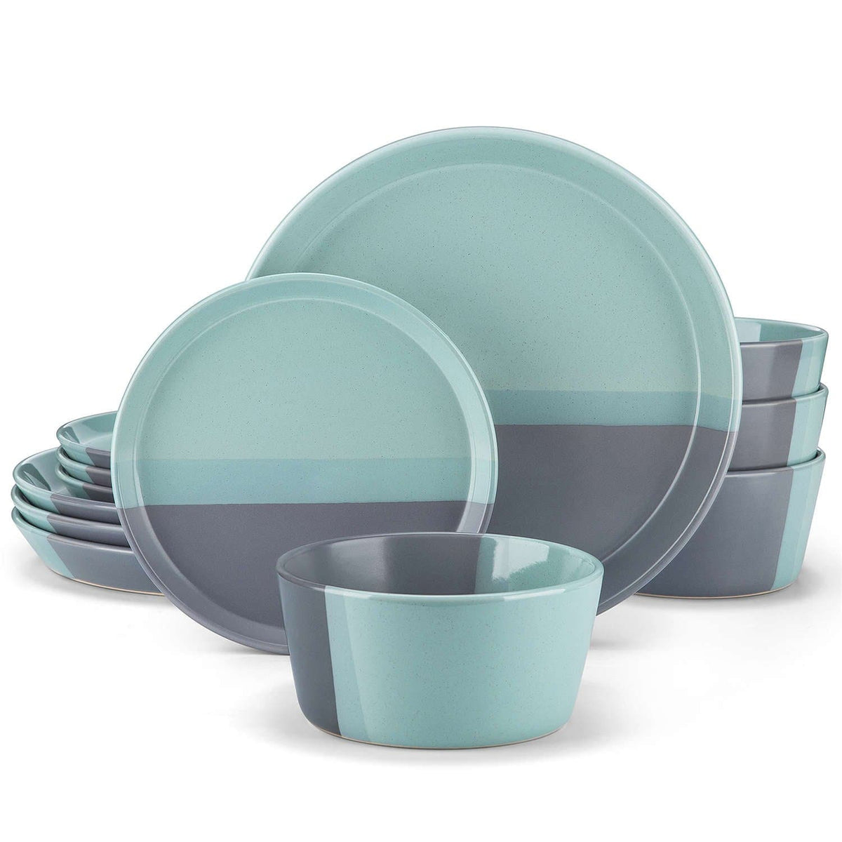 Glänzendes, rundes Geschirrset mit dreifarbiger Glasur