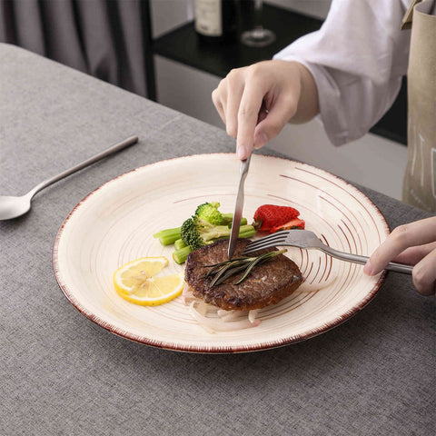 Jeder 27 cm-Teller wird sorgfältig in Handarbeit mit einer Spiral-Steinzeug-Technik gefertigt und verfügt über eine glänzende Oberfläche, die seinen Vintage-Charme verstärkt. Erhältlich in Beige, Creme, Blau, Grün, Grau und Türkis. Bella Die Teller der Serie verleihen Ihrem Tisch raffinierte Eleganz. Perfekt für Hauptgerichte, Salate oder Vorspeisen. Ihr einzigartiges Design und die leuchtenden Farben machen sie zu einem Blickfang bei jedem Essen.