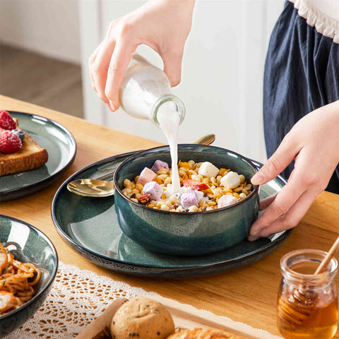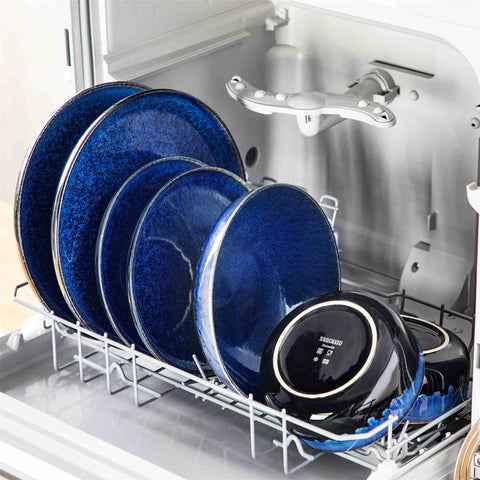 Das Starry Geschirrset fängt die Magie des Kosmos mit seiner reaktiven Glasur ein, die die Tiefe und Brillanz des Nachthimmels widerspiegelt. Glatte, lippenartige Kanten und ruhige Farbtöne von Starry Blau und Teal, angereichert mit subtilen Farbverläufen, verleihen jedem Stück einen raffinierten, aber natürlichen Charme. Entworfen für sechs Personen, umfasst das Set Essteller, Salatteller, Suppenschalen und Müslischalen, die alle aus strapazierfähigem Steinzeug gefertigt sind. Mikrowellen-, ofen- und spülmaschinenfest sowie durchdacht stapelbar für eine einfache Aufbewahrung, vereint diese Kollektion zeitlose Eleganz mit alltäglicher Praktikabilität.