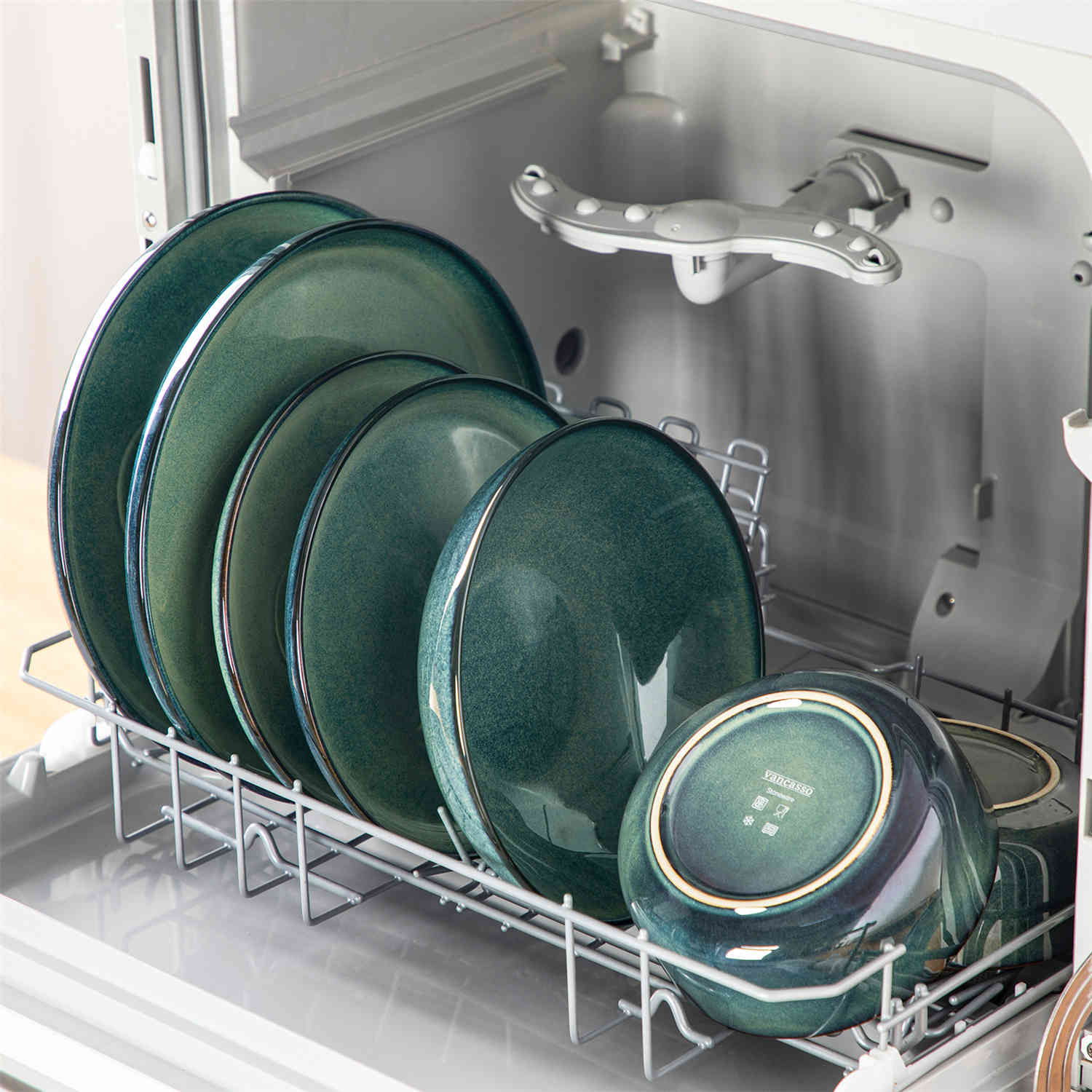 6: Milde Waschmittel: Halten Sie sich an milde Reinigungs mittel, um die ursprünglichen Farben und das Finish Ihres Geschirrs zu erhalten.