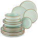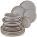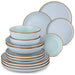 Enjoy the tranquil charm of Nevada evenings with this 16-piece stoneware dinnerware set. Each piece is delicately speckled, with glossy interiors and matte, caramel-edged exteriors for a unique, handcrafted feel. The set includes lipped-edge plates, stackable bowls, and four generous soup bowls for effortless everyday use. Available in green, blue, grey, beige, and assorted tones, this non-toxic, eco-friendly collection is microwave, dishwasher, and oven safe. Subtle textures and thoughtful details make every meal—from casual dinners to festive gatherings—inviting and stylish.