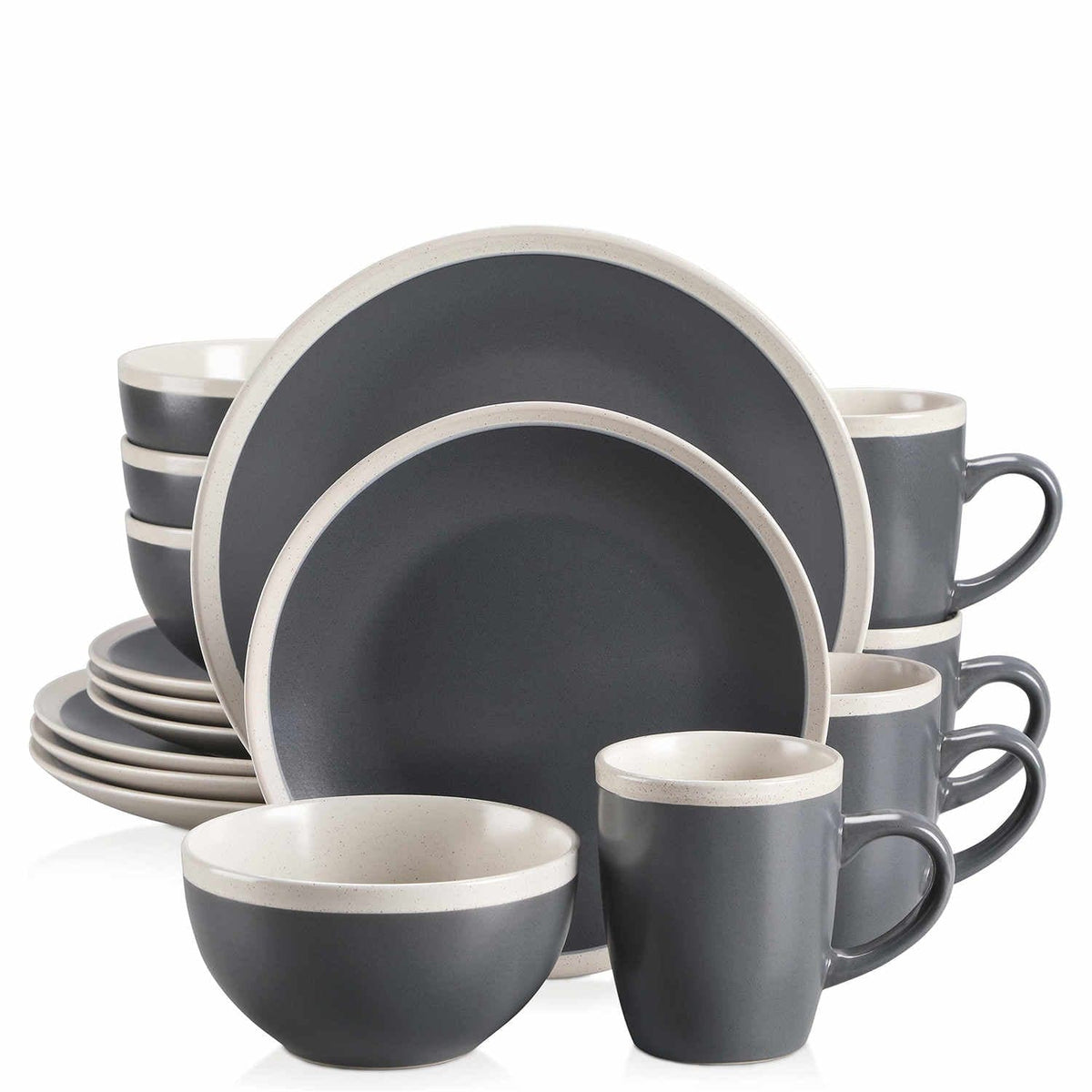 Service de vaisselle rond finition semi-mate, glaçure sésame