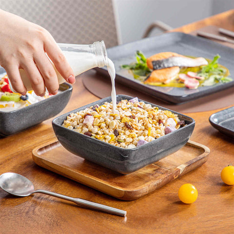 Découvrez le charme rustique de la vancasso Stern Collection, alliant l'allure inspirée de la ferme à un savoir-faire exceptionnel. Chaque pièce est méticuleusement fabriquée à partir de grès de première qualité, avec une glaçure réactive unique en bleu serein, vert vibrant, vert dégradé et rouge rustique. Cet ensemble comprend des assiettes à dîner carrées, des assiettes à salade de la ferme, des assiettes à soupe profondes et des bols de céréales polyvalents, parfaits pour les brunchs rustiques et les dîners de famille confortables, ces pièces apportent chaleur et caractère à votre expérience culinaire. Conçus pour aller au micro-ondes, au lave-vaisselle et au four, ils garantissent une durabilité et un entretien facile.
