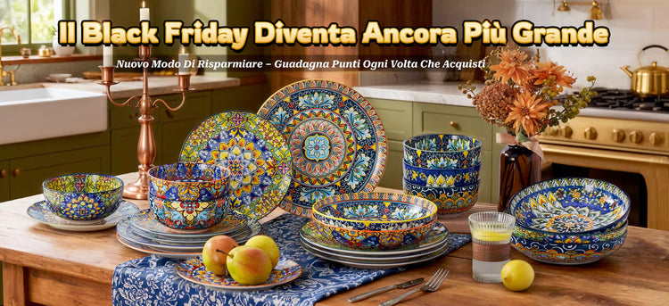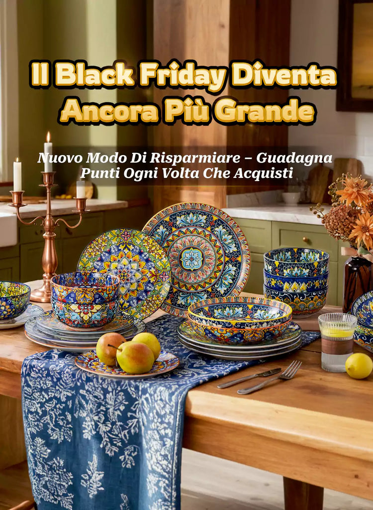 Ho comprato direttamente da Vancasso per la prima volta.In precedenza avevo acquistato da Amazon i servizi piatti di Vancasso Servizi molto belli e a prezzi competitivi... una meraviglia.Ricomprero sempre da Vancasso ..ne vale la pena.Servizio clienti gentilissimo e puntuale.Mi sono trovata benissimo.Imballaggi perfetti a prova di caduta.5 stelle!!!Grazie!
