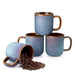A double-sided reactive glaze in deep indigo and warm caramel tones gives each stoneware mug a unique, one-of-a-kind pattern. The gentle curves fit comfortably in your hands, while the smooth finish and carefully crafted rims showcase artisanal quality and farmhouse charm. Available in 12oz (360ml) and 16oz (480ml), these mugs are ideal for sipping coffee, lattes, cappuccinos, tea, hot chocolate, or warm cider, at home or while catching up with friends. Durable, stackable, and safe for microwave and dishwasher use.